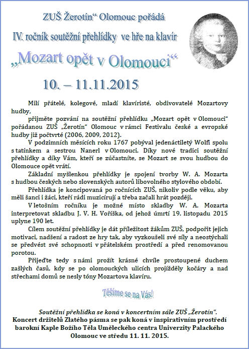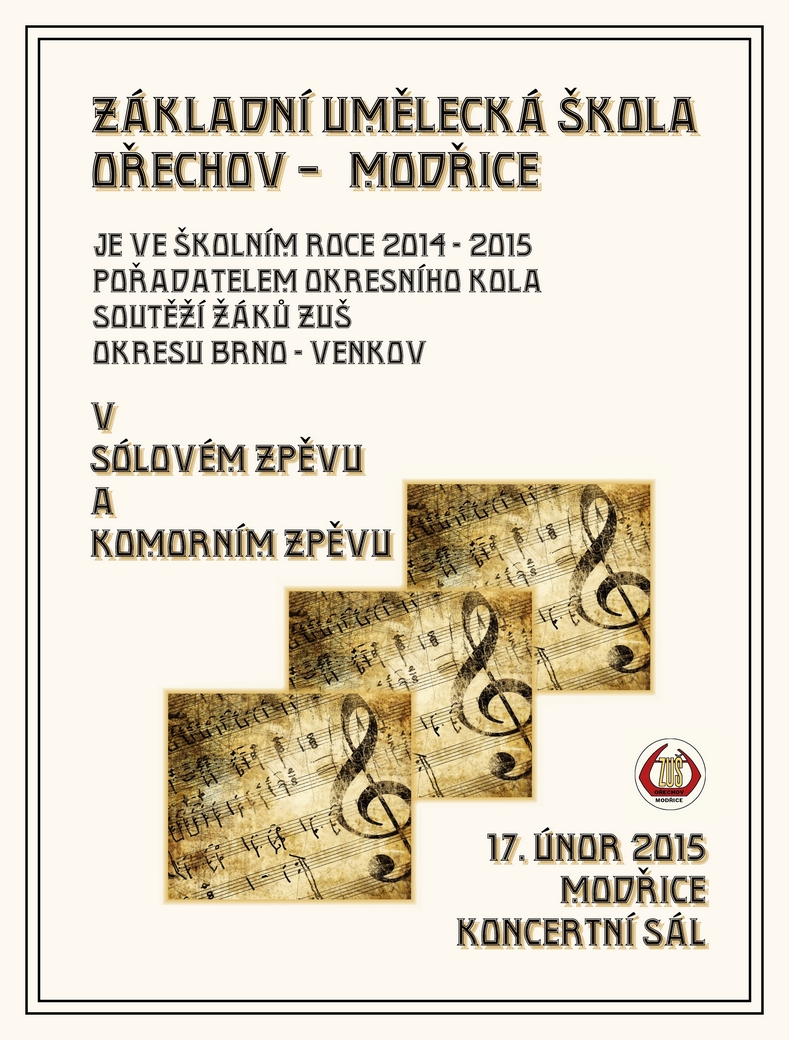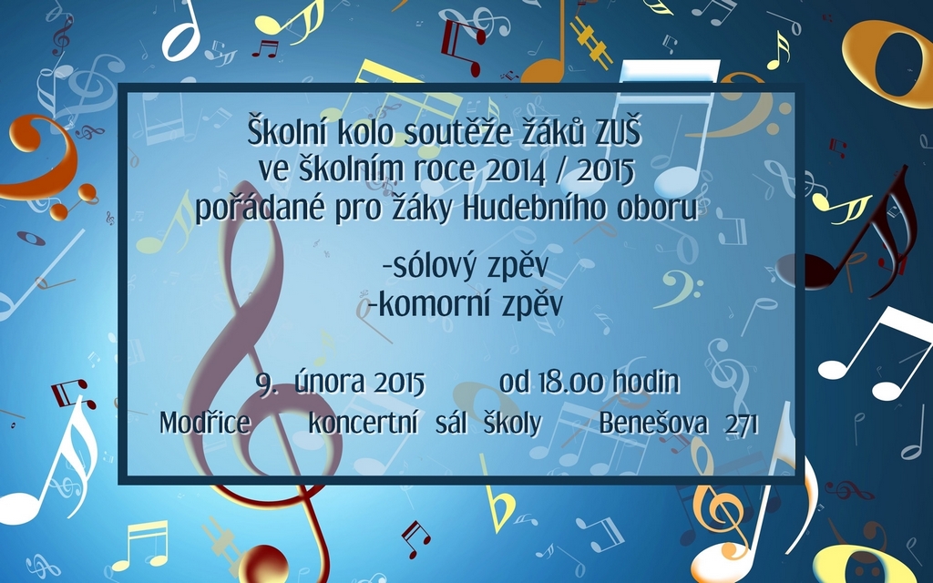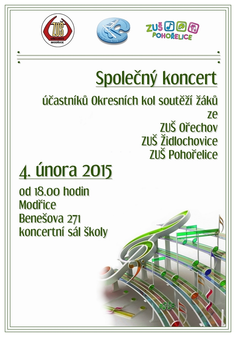 • Školní kolo Národní soutěže ZUŠ - klávesové nástroje, 29.1.2014, 14.00 hodin v koncertním sále školy Modřice;