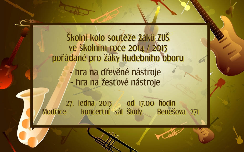 • Školní kolo soutěže ZUŠ, 24.1.2012, 16.30 hodin v koncertním sále školy Modřice;