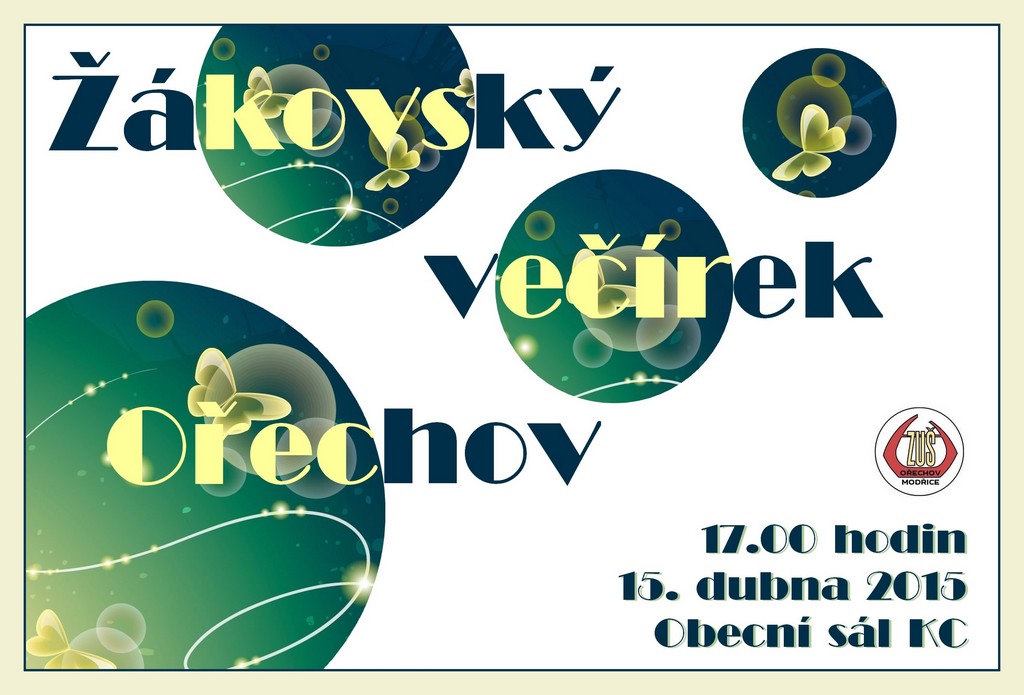 • Jarní žákovský večírek, 28.4.2014, 17.00 hodin v Obecním sále KC Ořechov; (pozvánka ZDE)