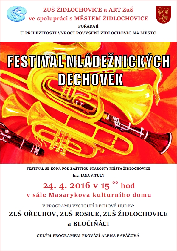 Gratulace žáků hudebního oboru, vystoupí žesťový soubor pod vedením MgA.Františka Kříže a klarinety pod vedením Pavla Rosendorfa dipl.spec.