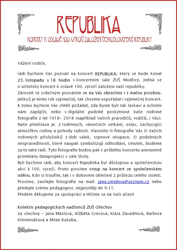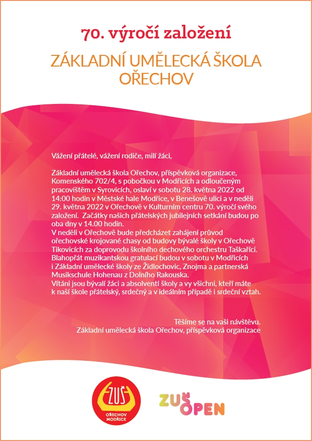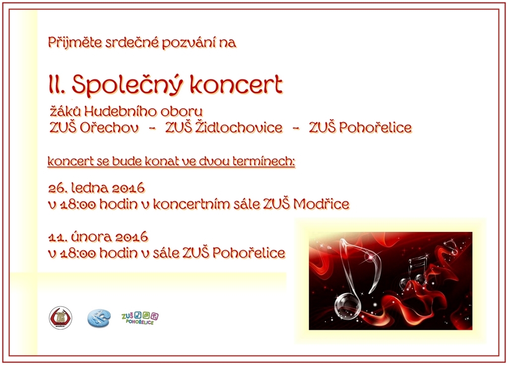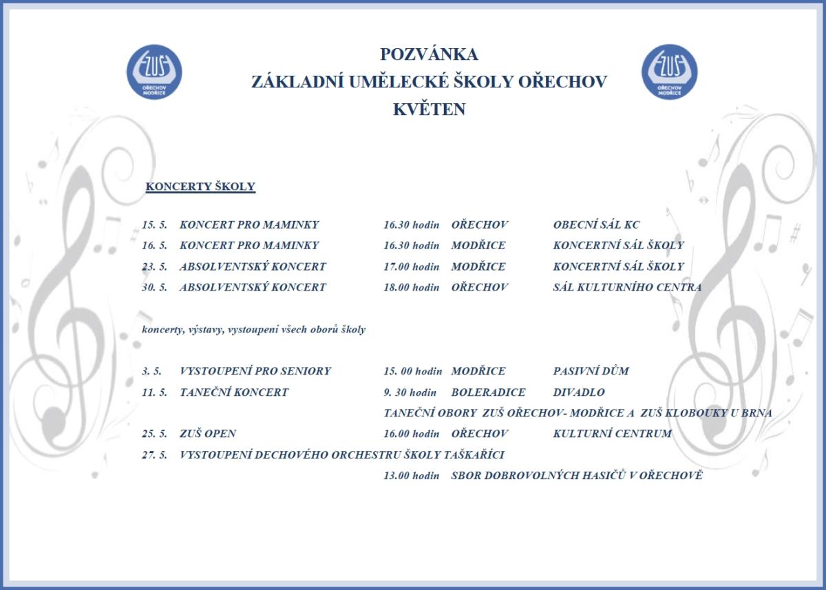 POZVÁNKY NA KONCERTY A AKCE ZUŠ OŘECHOV