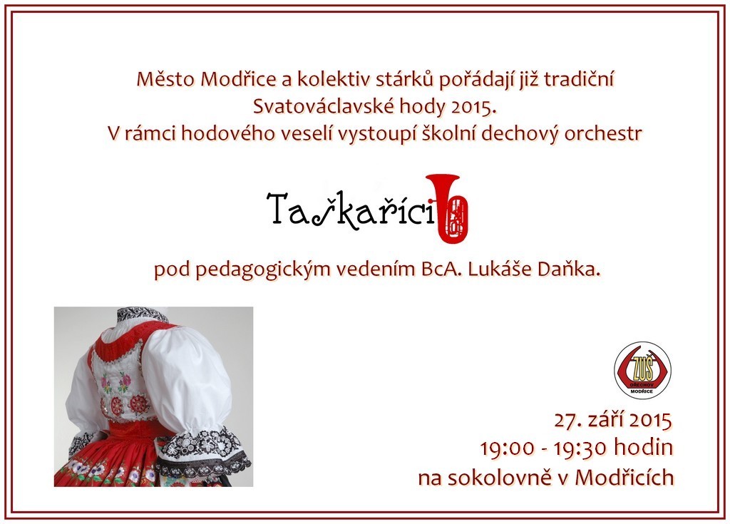 Školní orchestr Taškaříci vystoupí v rámci hudebního programu Svatováclavských hodů v Modřicích.