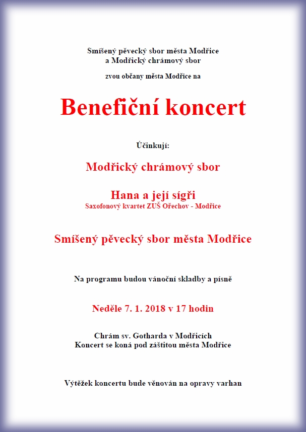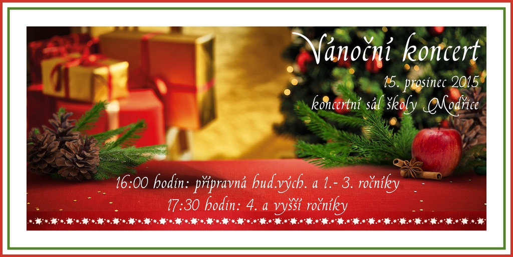 • Vánoční koncert Modřice - koncertní sál školy Modřice, 10.12.2013, 16.00 hodin: PHV - 3.ročník, 17.30 hodin: 4.ročník - II.cyklus;