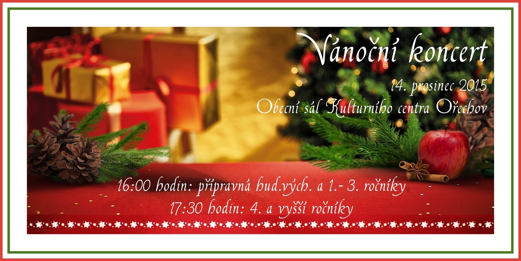 • Vánoční koncert Ořechov - Obecní sál KC Ořechov, 9.12.2013, 16.00 hodin: PHV - 3.ročník, 17.30 hodin: 4.ročník - II. cyklus;