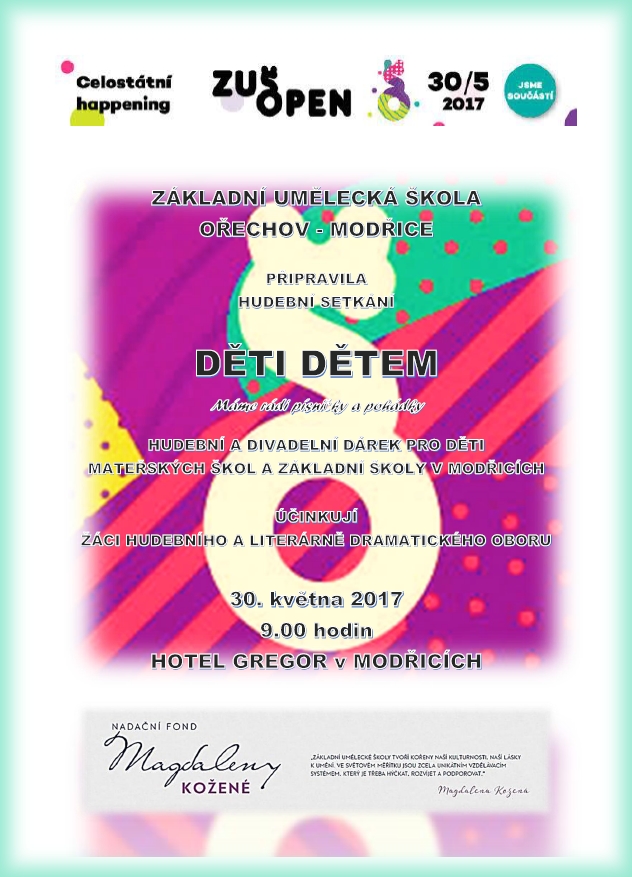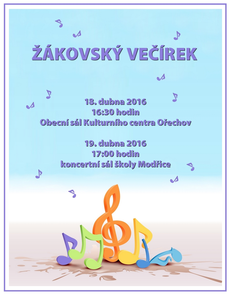 • Jarní žákovský večírek, 29.4.2014, 17.00 hodin v koncertním sále školy Modřice;