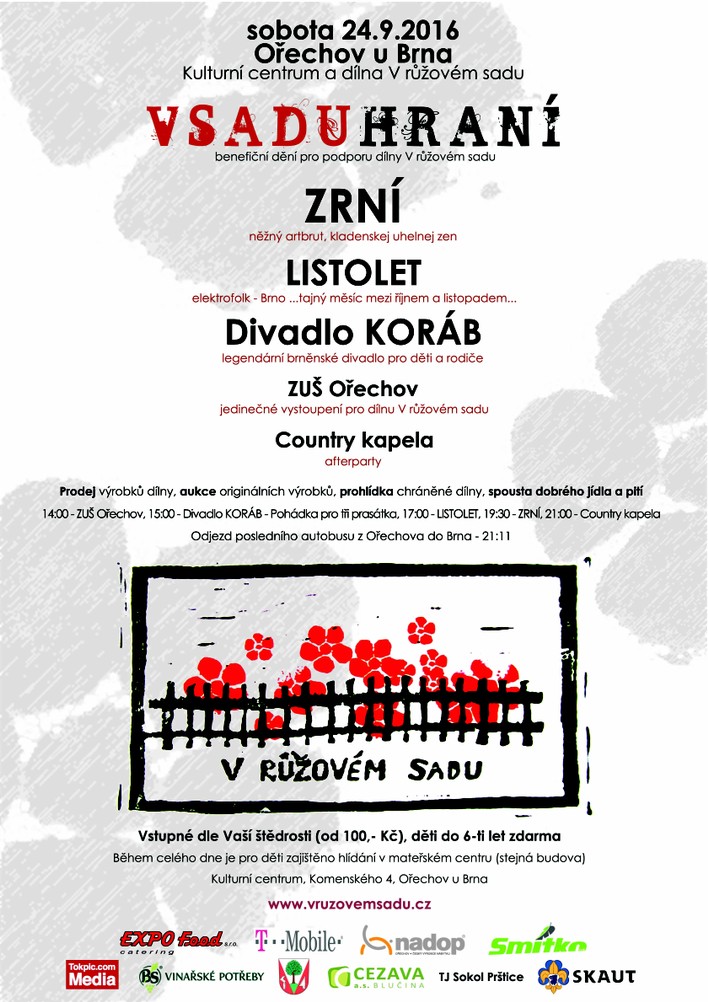 • Výročí občanského sdružení V růžovém sadu, 13.3.2014, 15.00 hodin v Obecním sále KC Ořechov - vystoupení žáků a souborů Hudebního oboru školy;