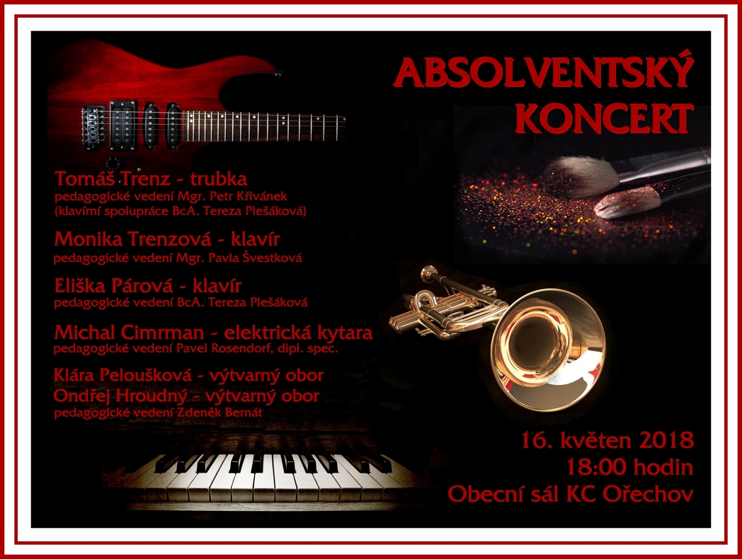 • Absolventský koncert - Ondřej Nováček (klarinet), Vít Skřička (klarinet), Petra Bulová (klavír), Nikola Švarcová (klavír), Lukáš Vojtěšek (kytara), 20.5.2013, 17.00 hodin v koncertní sále školy Modřice;