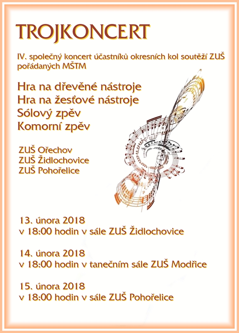 • Společný koncert žáků Základní umělecké školy Ořechov a Musikschule Hohenau an der March z Dolního Rakouska, 24.2.2013, 18.00 hodin v koncertním sále školy Modřice;