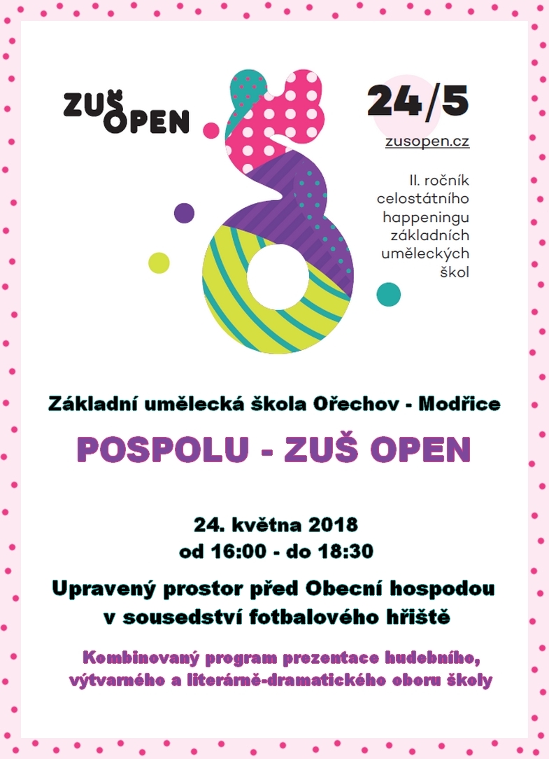 Odpoledne plné muziky, tance a divadelních představení, připravené pro rodiče žáků, přátele a  příznivce školy. Součástí odpoledne bude absolventská výstava prací žáků výtvarného oboru.