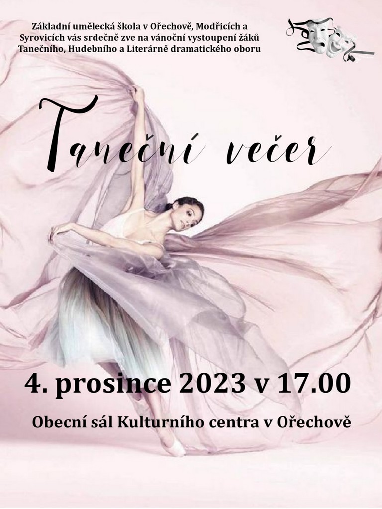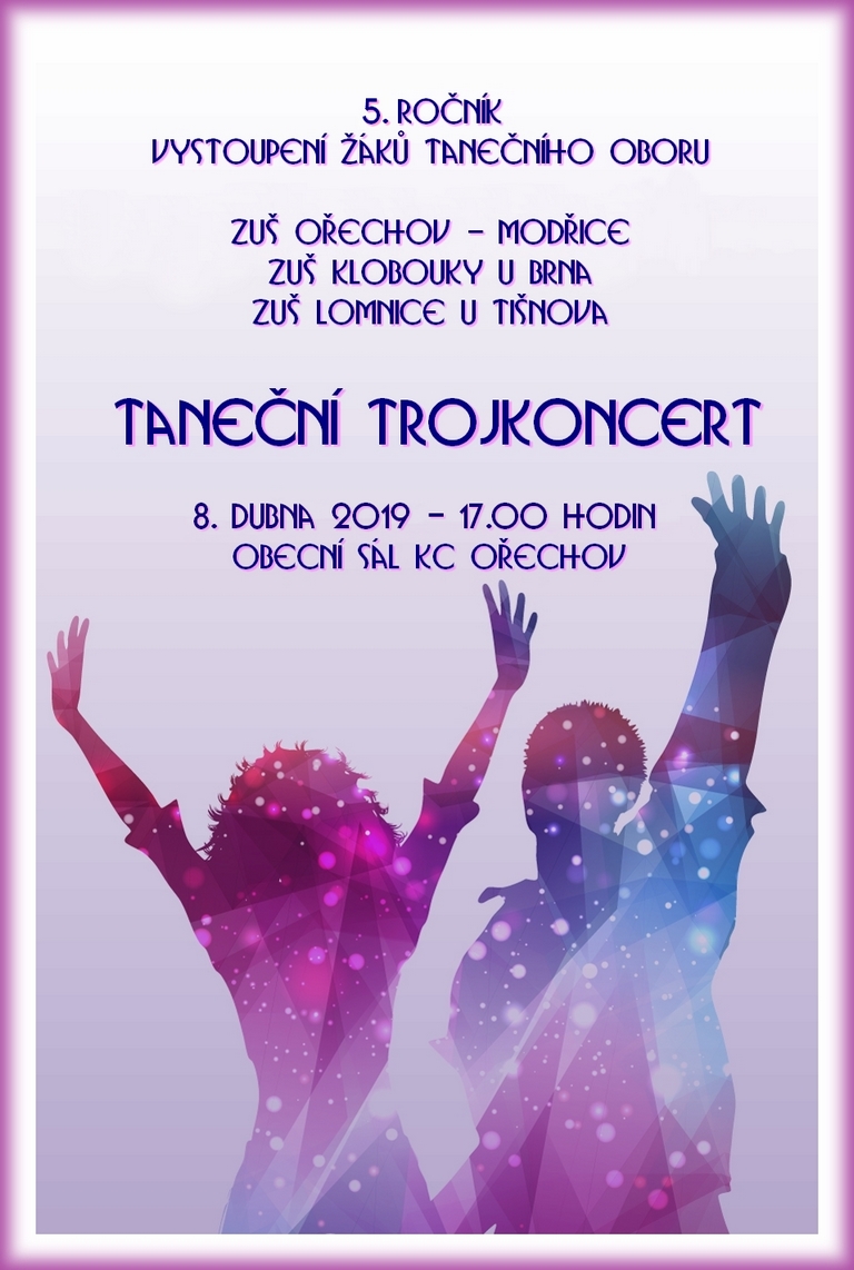 Tradiční vystoupení žáků tanečního oboru, jako hosté vystoupí žáci ZUŠ Klobouky u Brna a ZUŠ Lomnice.