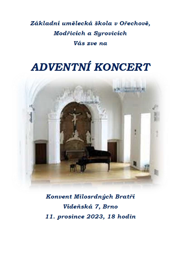 V rámci adventního času se uskuteční koncert v barokním sále v Konventu u Milosrdných bratří. Vystoupí žáci a učitelé školy.
