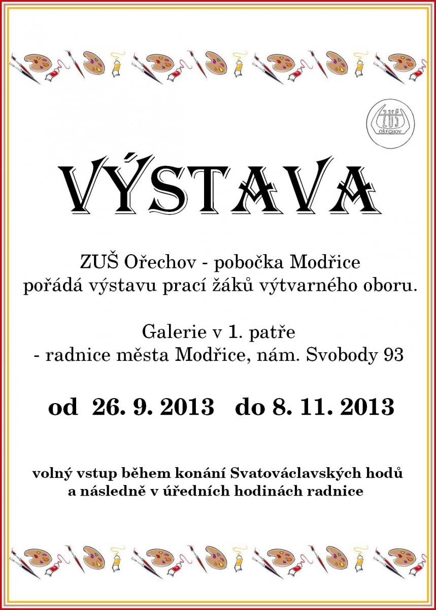 • Výstava prací žáků VO na radnici města Modřice, 26.9.2013-8.11.2013, galerie v 1. patře radnice města Modřice; (více ZDE)